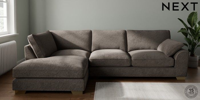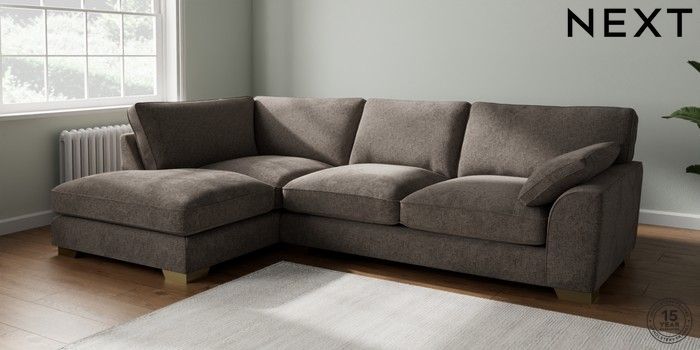 7.3.1 Buy Stamford Grand Relaxed Sit Large Corner Chaise - Left Hand Chunky Chenille Mink Brown Large Square Angle - Brushed Brass from the Seasons online shop Click here to use our website with more accessibility support, for example screen readers