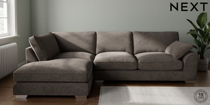 7.3.1 Buy Stamford Grand Relaxed Sit Large Corner Chaise - Left Hand Chunky Chenille Mink Brown Large Square Angle - Chrome Metal from the Seasons online shop Click here to use our website with more accessibility support, for example screen readers