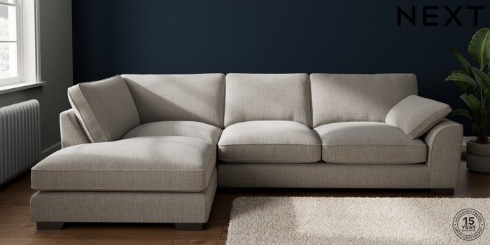 7.3.1 Buy Stamford Grand Relaxed Sit Large Corner Chaise - Left Hand Chunky Weave Dove Grey Large Square Angle - Gunmetal from the Seasons online shop Click here to use our website with more accessibility support, for example screen readers
