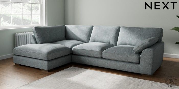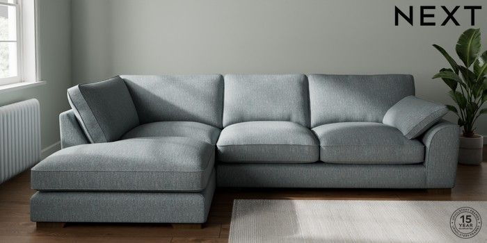 7.3.1 Buy Stamford Grand Relaxed Sit Large Corner Chaise - Left Hand Chunky Weave Mid Blue Large Square Angle - Mid from the Seasons online shop Click here to use our website with more accessibility support, for example screen readers