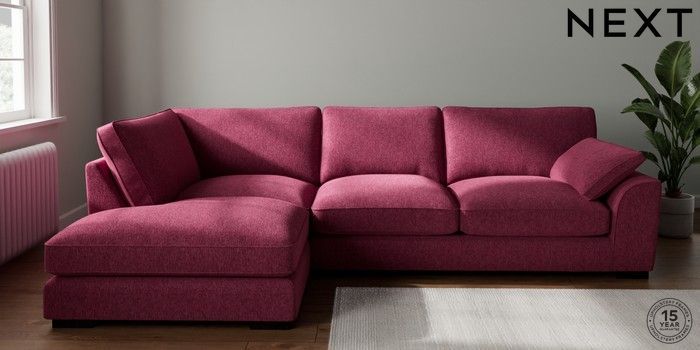 7.3.1 Buy Stamford Grand Relaxed Sit Large Corner Chaise - Left Hand Cotswold Chenille Dark Raspberry Pink Large Square Angle - Dark from the Seasons online shop Click here to use our website with more accessibility support, for example screen readers