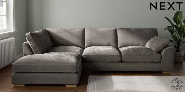 7.3.1 Buy Stamford Grand Relaxed Sit Large Corner Chaise - Left Hand Distressed Velour French Grey Large Square Angle - Light from the Seasons online shop Click here to use our website with more accessibility support, for example screen readers