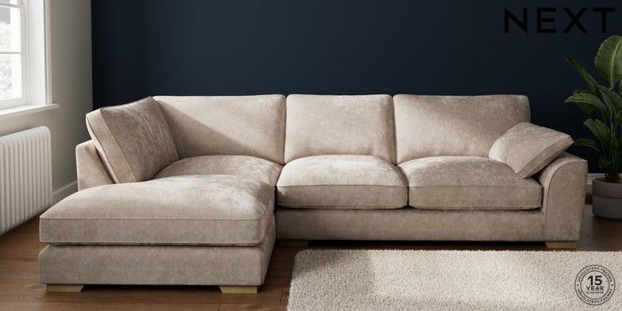 7.3.1 Buy Stamford Grand Relaxed Sit Large Corner Chaise - Left Hand Distressed Velour Mid Natural Large Square Angle - Light from the Seasons online shop Click here to use our website with more accessibility support, for example screen readers