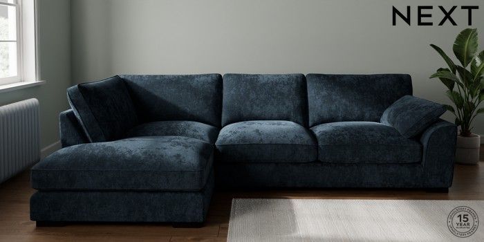 7.3.1 Buy Stamford Grand Relaxed Sit Large Corner Chaise - Left Hand Distressed Velour Midnight Blue Large Square Angle - Dark from the Seasons online shop Click here to use our website with more accessibility support, for example screen readers