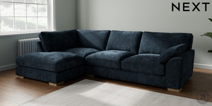 7.3.1 Buy Stamford Grand Relaxed Sit Large Corner Chaise - Left Hand Distressed Velour Midnight Blue Large Square Angle - Light from the Seasons online shop Click here to use our website with more accessibility support, for example screen readers