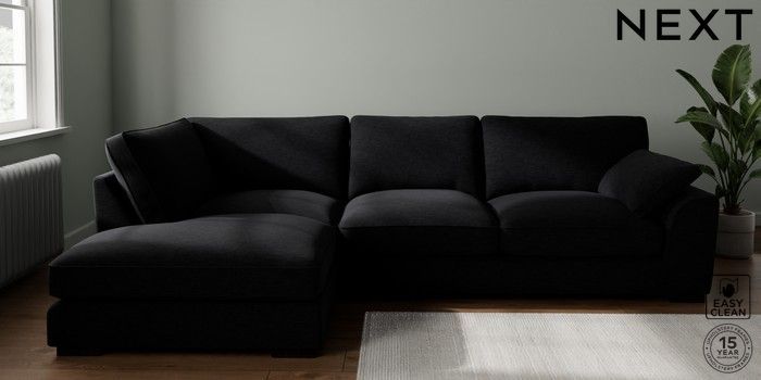 7.3.1 Buy Stamford Grand Relaxed Sit Large Corner Chaise - Left Hand Fine Chenille Easy Clean Black Large Square Angle - Dark from the Seasons online shop Click here to use our website with more accessibility support, for example screen readers