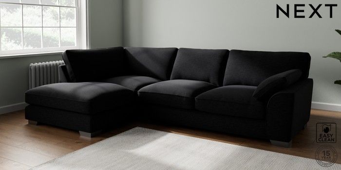 7.3.1 Buy Stamford Grand Relaxed Sit Large Corner Chaise - Left Hand Fine Chenille Easy Clean Black Large Square Angle - Gunmetal from the Seasons online shop Click here to use our website with more accessibility support, for example screen readers