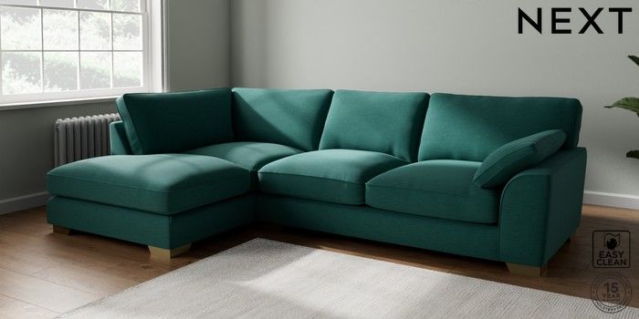 7.3.1 Buy Stamford Grand Relaxed Sit Large Corner Chaise - Left Hand Fine Chenille Easy Clean Dark Juniper Green Large Square Angle - Brushed Brass from the Seasons online shop Click here to use our website with more accessibility support, for example screen readers