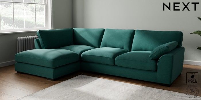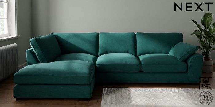 7.3.1 Buy Stamford Grand Relaxed Sit Large Corner Chaise - Left Hand Fine Chenille Easy Clean Dark Juniper Green Large Square Angle - Dark from the Seasons online shop Click here to use our website with more accessibility support, for example screen readers