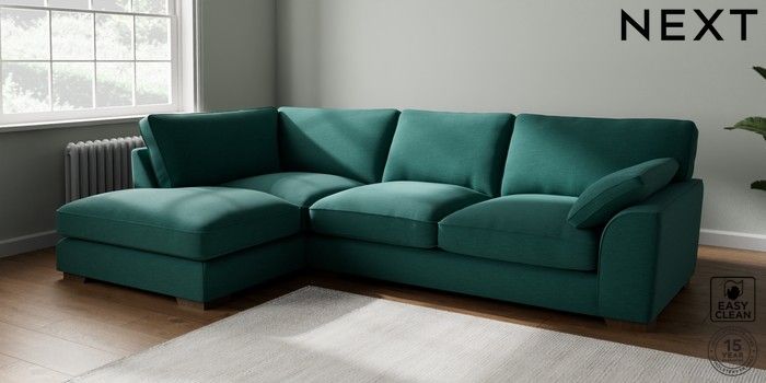7.3.1 Buy Stamford Grand Relaxed Sit Large Corner Chaise - Left Hand Fine Chenille Easy Clean Dark Juniper Green Large Square Angle - Mid from the Seasons online shop Click here to use our website with more accessibility support, for example screen readers