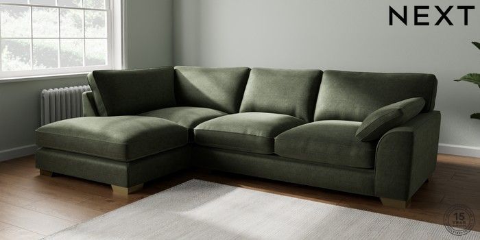 7.3.1 Buy Stamford Grand Relaxed Sit Large Corner Chaise - Left Hand Luxe Chenille Mid Green Large Square Angle - Brushed Brass from the Seasons online shop Click here to use our website with more accessibility support, for example screen readers
