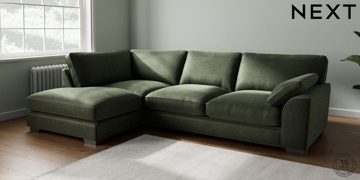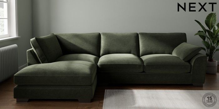 7.3.1 Buy Stamford Grand Relaxed Sit Large Corner Chaise - Left Hand Luxe Chenille Mid Green Large Square Angle - Gunmetal from the Seasons online shop Click here to use our website with more accessibility support, for example screen readers