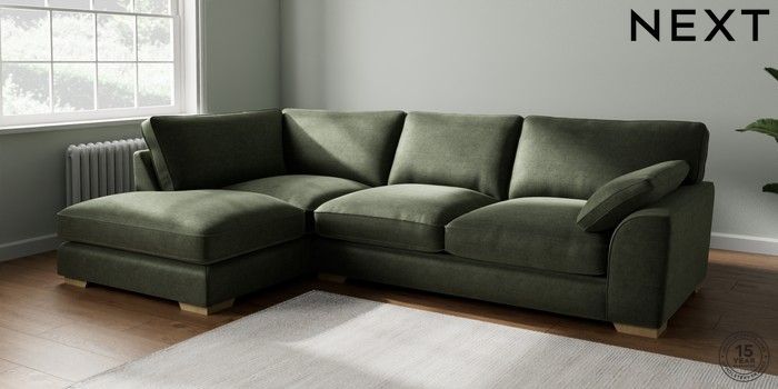 7.3.1 Buy Stamford Grand Relaxed Sit Large Corner Chaise - Left Hand Luxe Chenille Mid Green Large Square Angle - Light from the Seasons online shop Click here to use our website with more accessibility support, for example screen readers