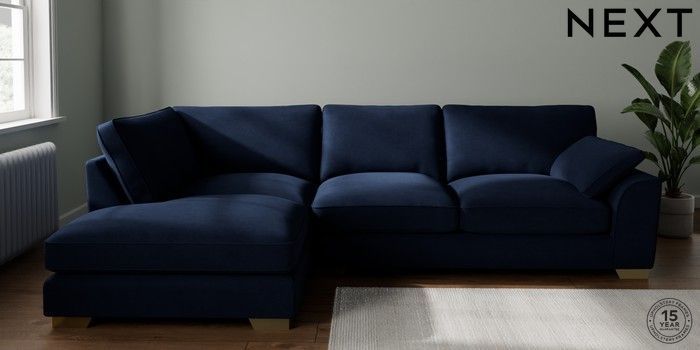 7.3.1 Buy Stamford Grand Relaxed Sit Large Corner Chaise - Left Hand Luxe Chenille Navy Blue Large Square Angle - Brushed Brass from the Seasons online shop Click here to use our website with more accessibility support, for example screen readers