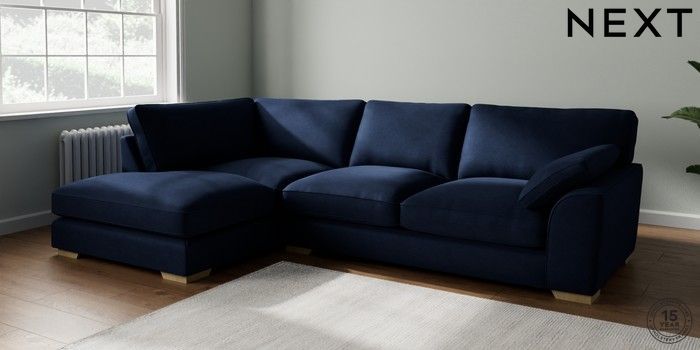 7.3.1 Buy Stamford Grand Relaxed Sit Large Corner Chaise - Left Hand Luxe Chenille Navy Blue Large Square Angle - Light from the Seasons online shop Click here to use our website with more accessibility support, for example screen readers
