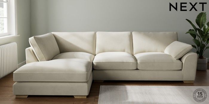 7.3.1 Buy Stamford Grand Relaxed Sit Large Corner Chaise - Left Hand Luxe Chenille Oyster Large Square Angle - Light from the Seasons online shop Click here to use our website with more accessibility support, for example screen readers