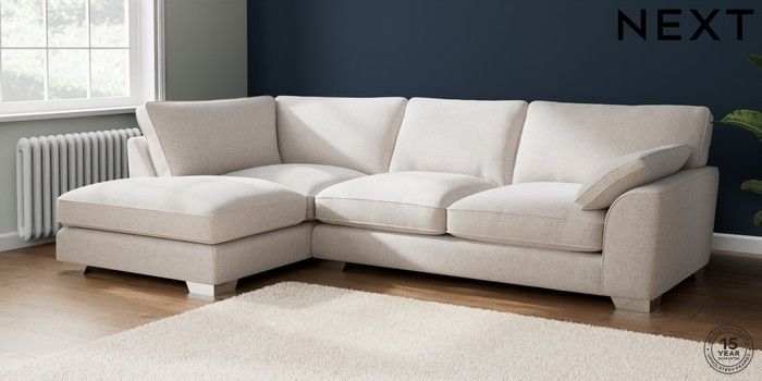 7.3.1 Buy Stamford Grand Relaxed Sit Large Corner Chaise - Left Hand Multi Weave Oyster Large Square Angle - Chrome Metal from the Seasons online shop Click here to use our website with more accessibility support, for example screen readers