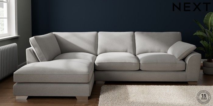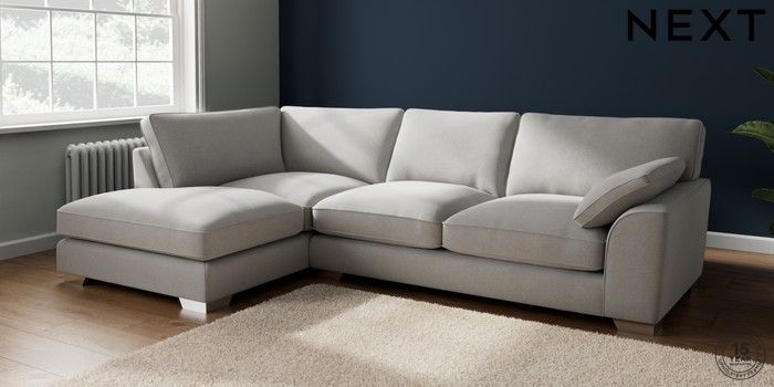 7.3.1 Buy Stamford Grand Relaxed Sit Large Corner Chaise - Left Hand Natural Mix Light Grey Large Square Angle - Chrome Metal from the Seasons online shop Click here to use our website with more accessibility support, for example screen readers