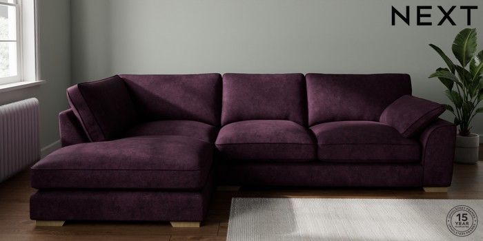 7.3.1 Buy Stamford Grand Relaxed Sit Large Corner Chaise - Left Hand Plush Chenille Dark Plum Purple Large Square Angle - Light from the Seasons online shop Click here to use our website with more accessibility support, for example screen readers