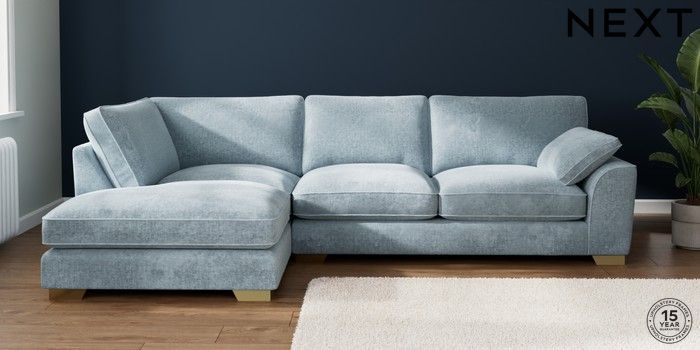 7.3.1 Buy Stamford Grand Relaxed Sit Large Corner Chaise - Left Hand Plush Chenille Light Blue Large Square Angle - Brushed Brass from the Seasons online shop Click here to use our website with more accessibility support, for example screen readers