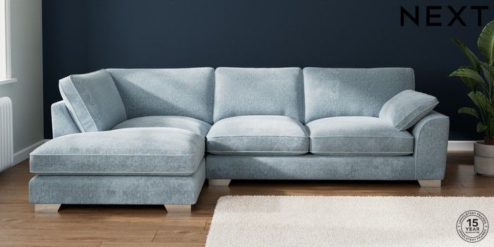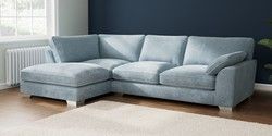 7.3.1 Buy Stamford Grand Relaxed Sit Large Corner Chaise - Left Hand Plush Chenille Light Blue Large Square Angle - Chrome Metal from the Seasons online shop Click here to use our website with more accessibility support, for example screen readers
