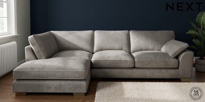 7.3.1 Buy Stamford Grand Relaxed Sit Large Corner Chaise - Left Hand Plush Chenille Light Grey Large Square Angle - Brushed Brass from the Seasons online shop Click here to use our website with more accessibility support, for example screen readers
