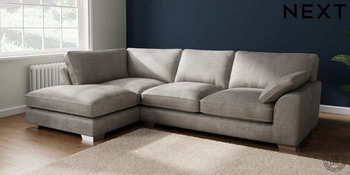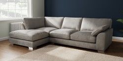 7.3.1 Buy Stamford Grand Relaxed Sit Large Corner Chaise - Left Hand Plush Chenille Light Grey Large Square Angle - Chrome Metal from the Seasons online shop Click here to use our website with more accessibility support, for example screen readers