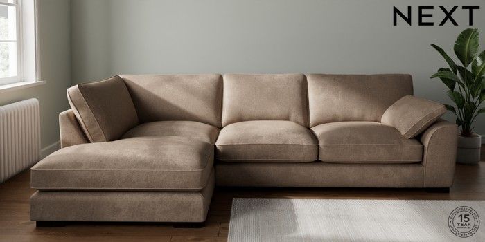 7.3.1 Buy Stamford Grand Relaxed Sit Large Corner Chaise - Left Hand Plush Chenille Mid Natural Large Square Angle - Dark from the Seasons online shop Click here to use our website with more accessibility support, for example screen readers