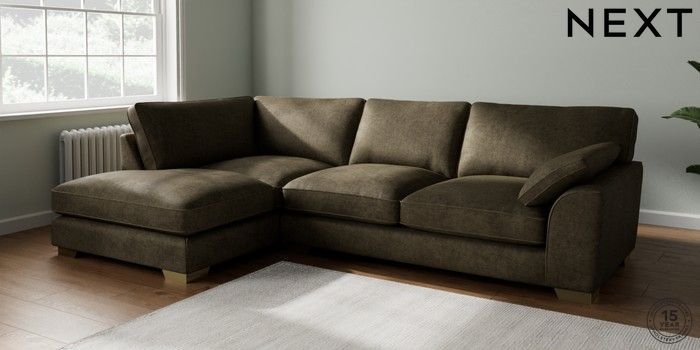 7.3.1 Buy Stamford Grand Relaxed Sit Large Corner Chaise - Left Hand Plush Chenille Moss Green Large Square Angle - Brushed Brass from the Seasons online shop Click here to use our website with more accessibility support, for example screen readers
