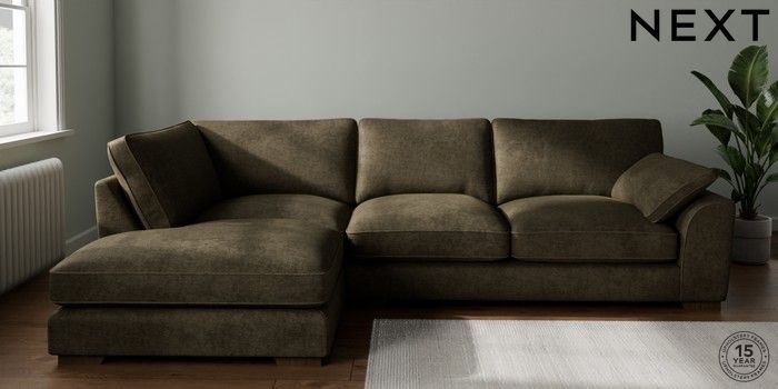 7.3.1 Buy Stamford Grand Relaxed Sit Large Corner Chaise - Left Hand Plush Chenille Moss Green Large Square Angle - Mid from the Seasons online shop Click here to use our website with more accessibility support, for example screen readers