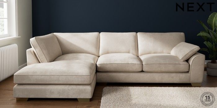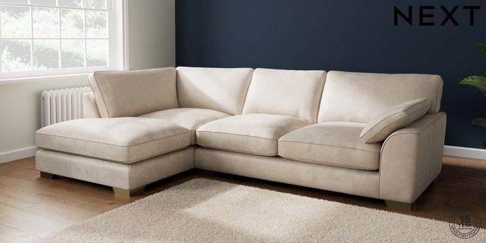 7.3.1 Buy Stamford Grand Relaxed Sit Large Corner Chaise - Left Hand Plush Chenille Oyster Large Square Angle - Brushed Brass from the Seasons online shop Click here to use our website with more accessibility support, for example screen readers