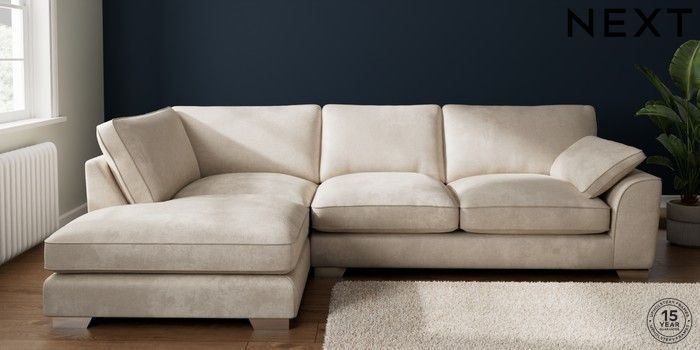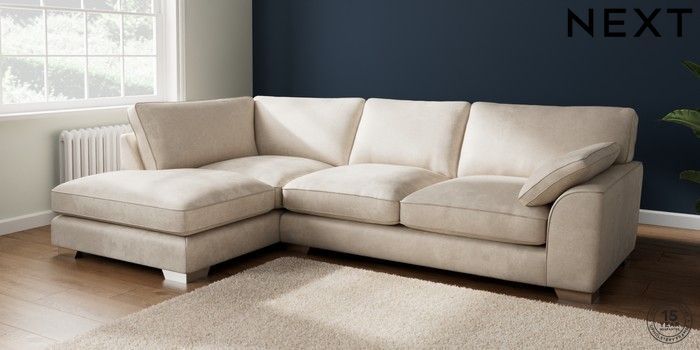 7.3.1 Buy Stamford Grand Relaxed Sit Large Corner Chaise - Left Hand Plush Chenille Oyster Large Square Angle - Chrome Metal from the Seasons online shop Click here to use our website with more accessibility support, for example screen readers