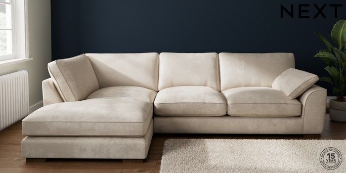 7.3.1 Buy Stamford Grand Relaxed Sit Large Corner Chaise - Left Hand Plush Chenille Oyster Large Square Angle - Mid from the Seasons online shop Click here to use our website with more accessibility support, for example screen readers