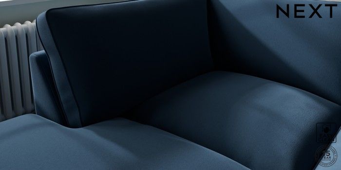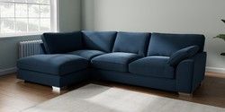 7.3.1 Buy Stamford Grand Relaxed Sit Large Corner Chaise - Left Hand Plush Velvet Easy Clean Airforce Blue Large Square Angle - Chrome Metal from the Seasons online shop