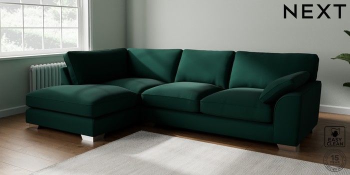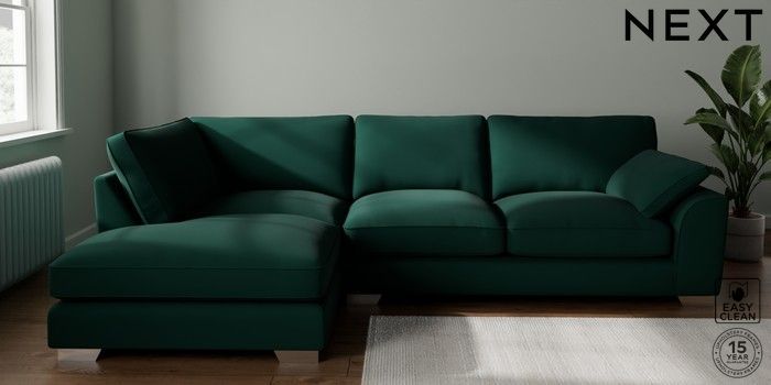 7.3.1 Buy Stamford Grand Relaxed Sit Large Corner Chaise - Left Hand Plush Velvet Easy Clean Bottle Green Large Square Angle - Chrome Metal from the Seasons online shop