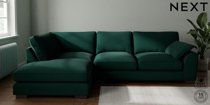 7.3.1 Buy Stamford Grand Relaxed Sit Large Corner Chaise - Left Hand Plush Velvet Easy Clean Bottle Green Large Square Angle - Gunmetal from the Seasons online shop
