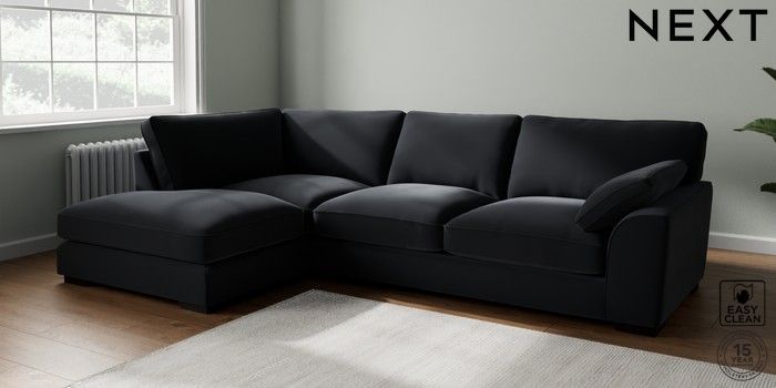 7.3.1 Buy Stamford Grand Relaxed Sit Large Corner Chaise - Left Hand Plush Velvet Easy Clean Charcoal Grey Large Square Angle - Dark from the Seasons online shop Click here to use our website with more accessibility support, for example screen readers