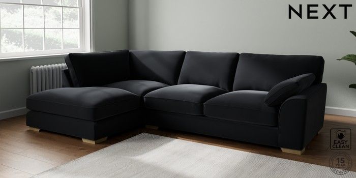 7.3.1 Buy Stamford Grand Relaxed Sit Large Corner Chaise - Left Hand Plush Velvet Easy Clean Charcoal Grey Large Square Angle - Light from the Seasons online shop Click here to use our website with more accessibility support, for example screen readers