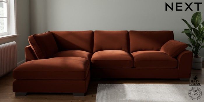 7.3.1 Buy Stamford Grand Relaxed Sit Large Corner Chaise - Left Hand Plush Velvet Easy Clean Ginger Orange Large Square Angle - Gunmetal from the Seasons online shop