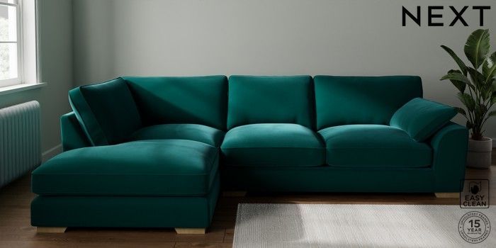 7.3.1 Buy Stamford Grand Relaxed Sit Large Corner Chaise - Left Hand Plush Velvet Easy Clean Juniper Green Large Square Angle - Light from the Seasons online shop Click here to use our website with more accessibility support, for example screen readers