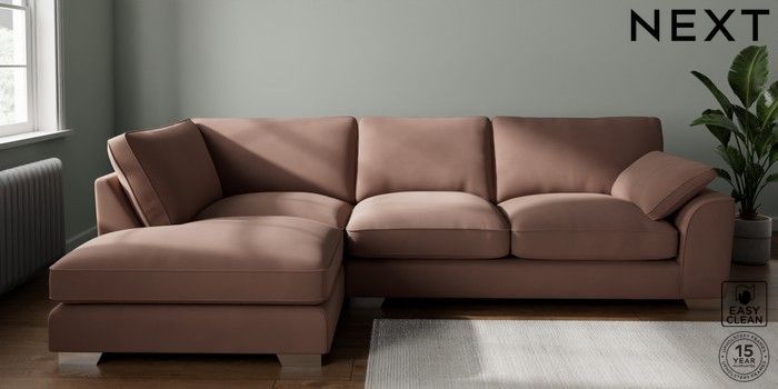 7.3.1 Buy Stamford Grand Relaxed Sit Large Corner Chaise - Left Hand Plush Velvet Easy Clean Mid Natural Large Square Angle - Chrome Metal from the Seasons online shop