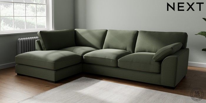 7.3.1 Buy Stamford Grand Relaxed Sit Large Corner Chaise - Left Hand Relaxed Linen Look Dark Green Large Square Angle - Dark from the Seasons online shop Click here to use our website with more accessibility support, for example screen readers