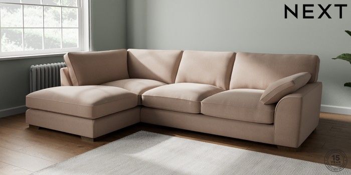 7.3.1 Buy Stamford Grand Relaxed Sit Large Corner Chaise - Left Hand Relaxed Linen Look Mid Natural Large Square Angle - Mid from the Seasons online shop Click here to use our website with more accessibility support, for example screen readers