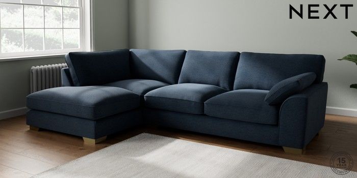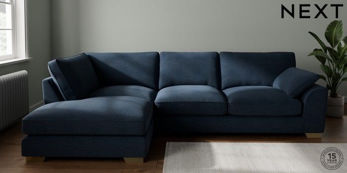 7.3.1 Buy Stamford Grand Relaxed Sit Large Corner Chaise - Left Hand Ripple Chenille Dark Blue Large Square Angle - Brushed Brass from the Seasons online shop Click here to use our website with more accessibility support, for example screen readers