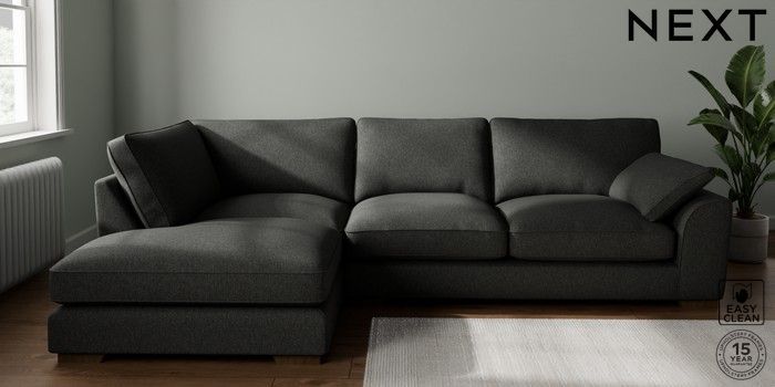 7.3.1 Buy Stamford Grand Relaxed Sit Large Corner Chaise - Left Hand Tweedy Blend Easy Clean Charcoal Grey Large Square Angle - Mid from the Seasons online shop Click here to use our website with more accessibility support, for example screen readers