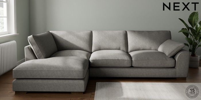 7.3.1 Buy Stamford Grand Relaxed Sit Large Corner Chaise - Left Hand Tweedy Chenille Mid Grey Large Square Angle - Mid from the Seasons online shop Click here to use our website with more accessibility support, for example screen readers