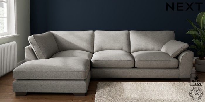 7.3.1 Buy Stamford Grand Relaxed Sit Large Corner Chaise - Left Hand Woven Chenille Easy Clean Light Grey Large Square Angle - Gunmetal from the Seasons online shop Click here to use our website with more accessibility support, for example screen readers