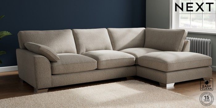 7.3.1 Buy Stamford Grand Relaxed Sit Large Corner Chaise - Right Hand Chunky Boucle Easy Clean Dove Large Square Angle - Chrome Metal from the Seasons online shop