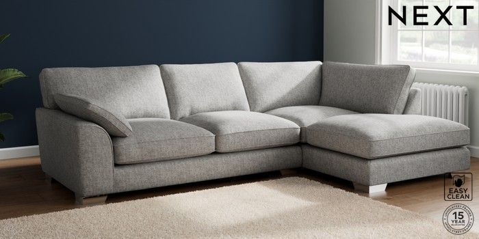 7.3.1 Buy Stamford Grand Relaxed Sit Large Corner Chaise - Right Hand Chunky Boucle Easy Clean Light Grey Large Square Angle - Chrome Metal from the Seasons online shop Click here to use our website with more accessibility support, for example screen readers