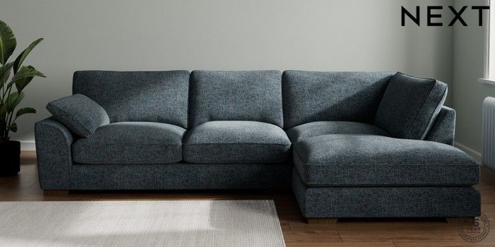 7.3.1 Buy Stamford Grand Relaxed Sit Large Corner Chaise - Right Hand Chunky Chenille Dark Navy Blue Large Square Angle - Mid from the Seasons online shop Click here to use our website with more accessibility support, for example screen readers